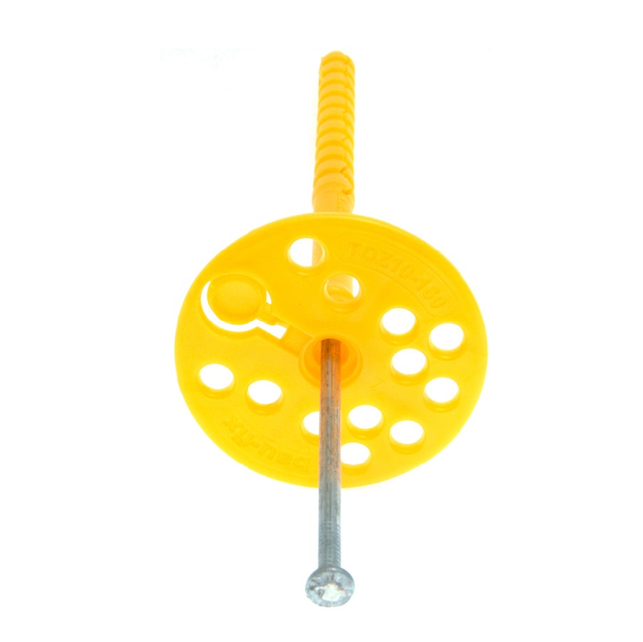 Дюбель для теплоизоляции с металлическим гвоздём и пластиковой заглушки, которая изолирует распорный элемент от внешней среды. предназначен для закрепления всех видов теплоизоляции (каменная вата, ламели, пенополистирол, пробковые плиты, плиты из легких материалов и т.д.).