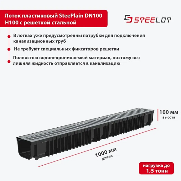 Лоток пластиковый SteePlain DN100 H100 с решеткой стальнойЛоток пластиковый SteePlain DN100 H100 с решеткой стальнойЛоток пластиковый SteePlain DN100 H100 с решеткой стальнойЛоток пластиковый SteePlain DN100 H100 с решеткой стальнойЛоток пластиковый SteePlain DN100 H100 с решеткой стальнойЛоток пластиковый SteePlain DN100 H100 с решеткой стальной