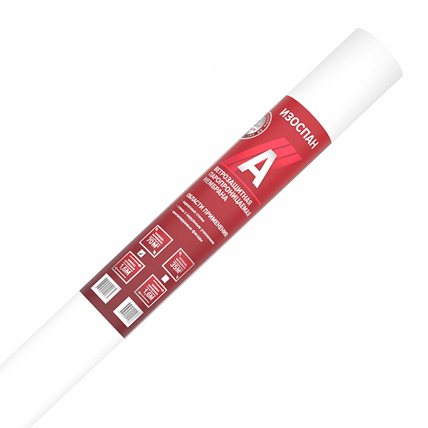 Ветрозащитная мембрана Изоспан A препятствует конвективному движению воздуха через теплоизоляцию, снижая теплопотери. Изоспан A обладает водоупорностью, достаточной для защиты утеплителя и других внутренних элементов конструкций стен от атмосферных осадков, проникающих под наружную обшивку, при этом является паропроницаемым материалом, поэтому не препятствует выходу водяных паров из утеплителя в вентилируемый зазор. Прочность материала способствует устойчивости к механическим нагрузкам на этапе монтажа и в процессе эксплуатации.