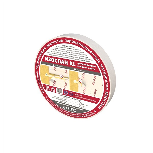 Изоспан KL - двухсторонняя соединительная лента. НАЗНАЧЕНИЕ: - герметизация и скрепление нахлестов полотен пароизоляции «Изоспан» ОСОБЕННОСТИ: - предназначена для внутренних работ (для герметизации нахлестов пароизоляции) - минимальная температура монтажа +15°C ТЕХНИЧЕСКИЕ…