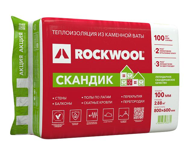 Минеральная вата РОКВУЛ Лайт Баттс Скандик 2 СОРТ 800х600х100мм, 6шт/2,88м2/0,288м3/уп