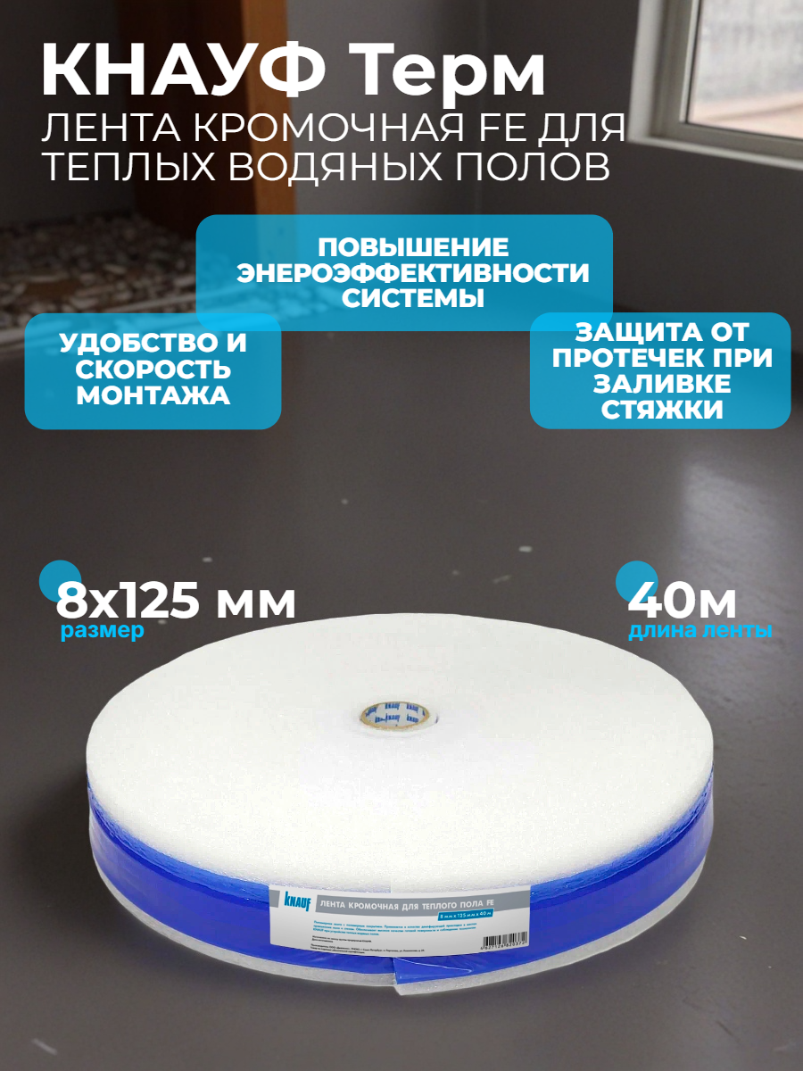 Лента кромочная КНАУФ ТЕРМ для теплого пола FE - это полимерная демпфирующая прокладка, используемая при устройстве водяных тёплых полов со стяжкой. Она предотвращает протекание растворной смеси наливного пола и обеспечивает высокое качество готовой поверхности. Преимущества: Эффективно препятствует протеканию растворной смеси наливного пола. Обеспечивает…