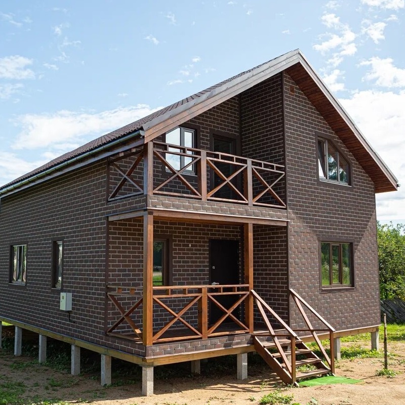 При помощи плитки фасадной Хауберк выполняют облицовку фасадов строений из дерева, пено- и газоблоков, а также заборов и ограждений. Фасадную плитку ТЕХНОНИКОЛЬ HAUBERK используют и для декоративного оформления входных групп и фронтонов.