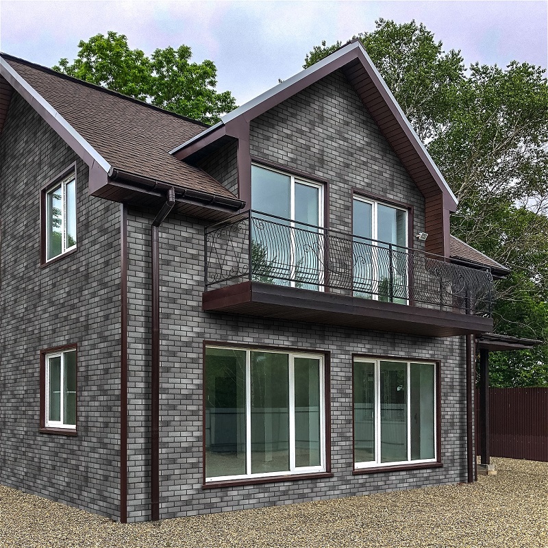 При помощи плитки фасадной Хауберк выполняют облицовку фасадов строений из дерева, пено- и газоблоков, а также заборов и ограждений. Фасадную плитку ТЕХНОНИКОЛЬ HAUBERK используют и для декоративного оформления входных групп и фронтонов.